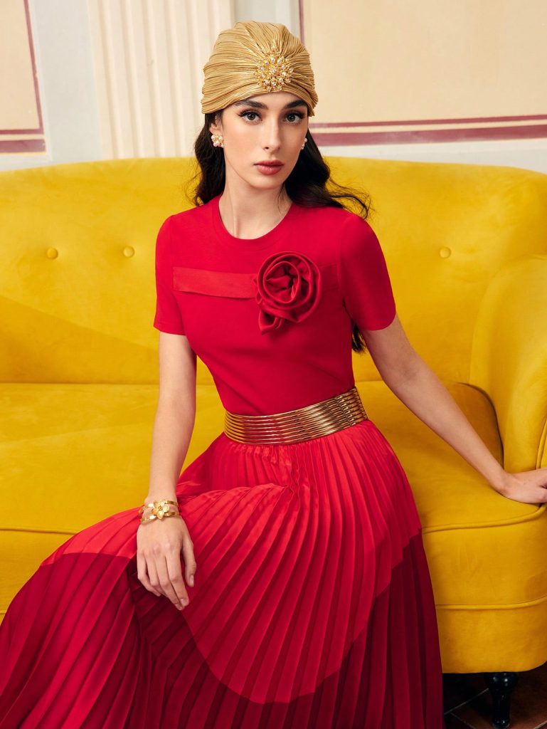 ZEYLAH ZEYLAH STEREO FLORAL Rose SHORT SLEEVE T-SHIRT FOR Valentine’s Day OUTFIT, NEW YEAR OUTFIT,SPRING/SUMMER