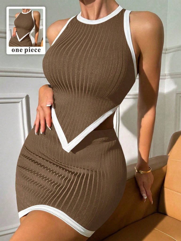 SHEIN Raffinéa Contrast Binding Asymmetrical Hem Tank Top Graphic Tees Women Tops